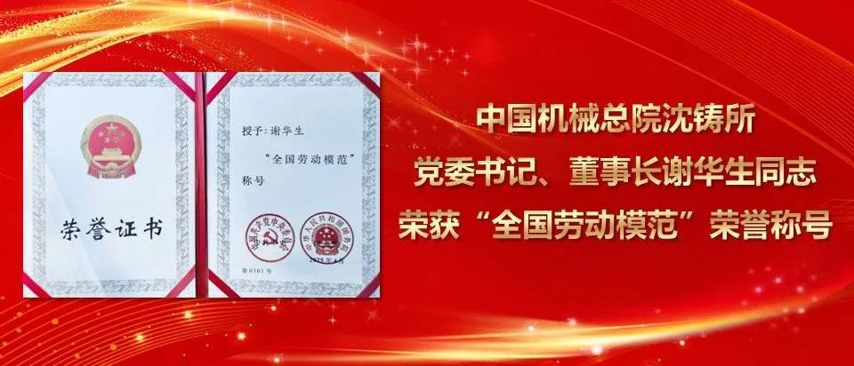 4月28日,全國勞動模范和先進工作者表彰大會在北京人民大會堂召開,中國機械總院集團沈陽鑄造研究所有限公司黨委書記、董事長謝華生榮獲“全國勞動模范”榮譽稱...