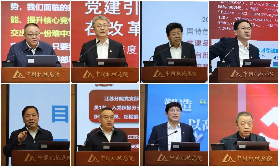中機一院、機電所、中機認檢、基礎院、輕量化院、江蘇分院、寧波機床院、云南院等8家單位黨組織書記現場述職。王德成結合黨組織書記現場述職和日常工作情況,逐一提問和點評,肯定了亮點成績、指出了存在問題、提出了意見建議。集團黨委委員分別進行簡要點評。